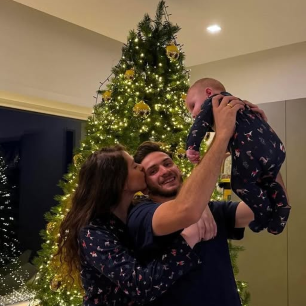 ცნობილი ქართველი ფეხბურთელის, ხვიჩა კვარაცხელიას, ოჯახური საახალწლო განწყობის ფოტოებს მისი მეუღლე, ნიცა თავაძე, სოციალურ ქსელ „ინსტაგრამში“ ავრცელებს. კადრებში ჩანს სანტად გადაცმული დამიანე და საახალწლო სუფრა.